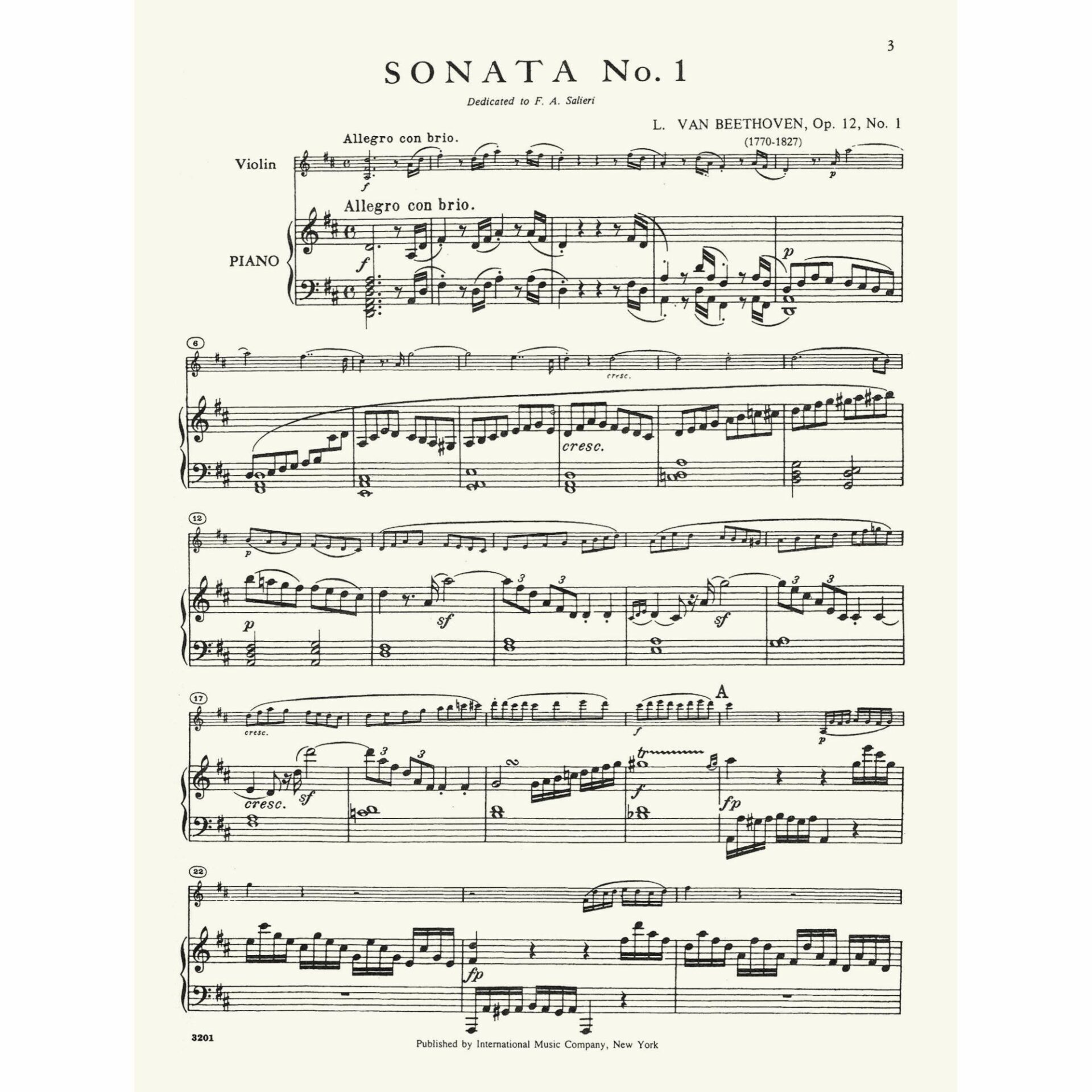 • Violin Sonata No. 1 in D Major, Op. 12, No. 1