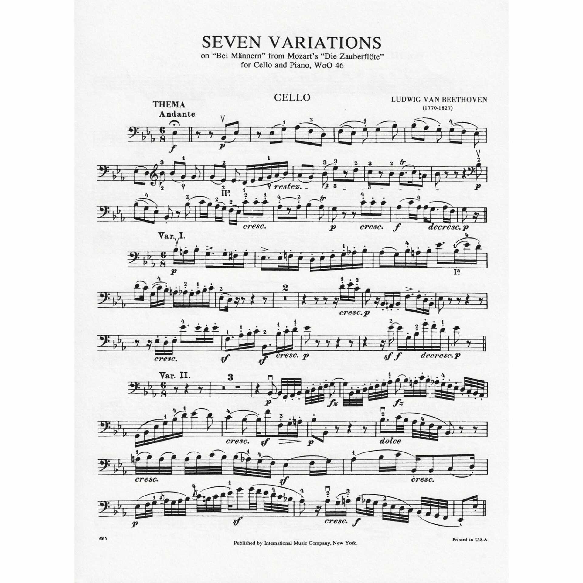 Title: Seven Variations on “Bei Mannern” from Mozart’s Die Zauberflote, WoO 46