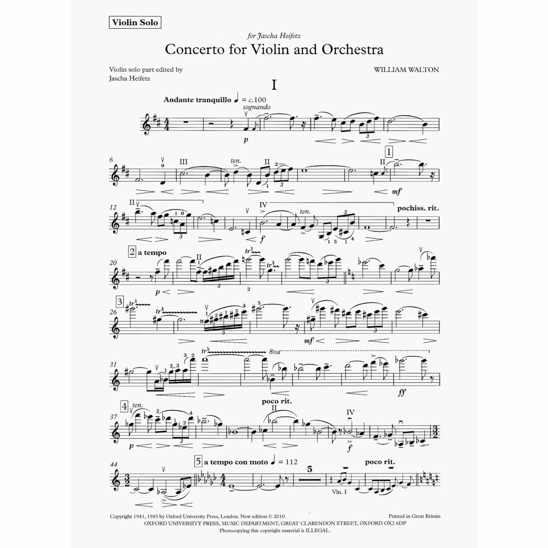 Title: Concerto for Violin, By William Walton, Published by Oxford University Press, Item number: 23007