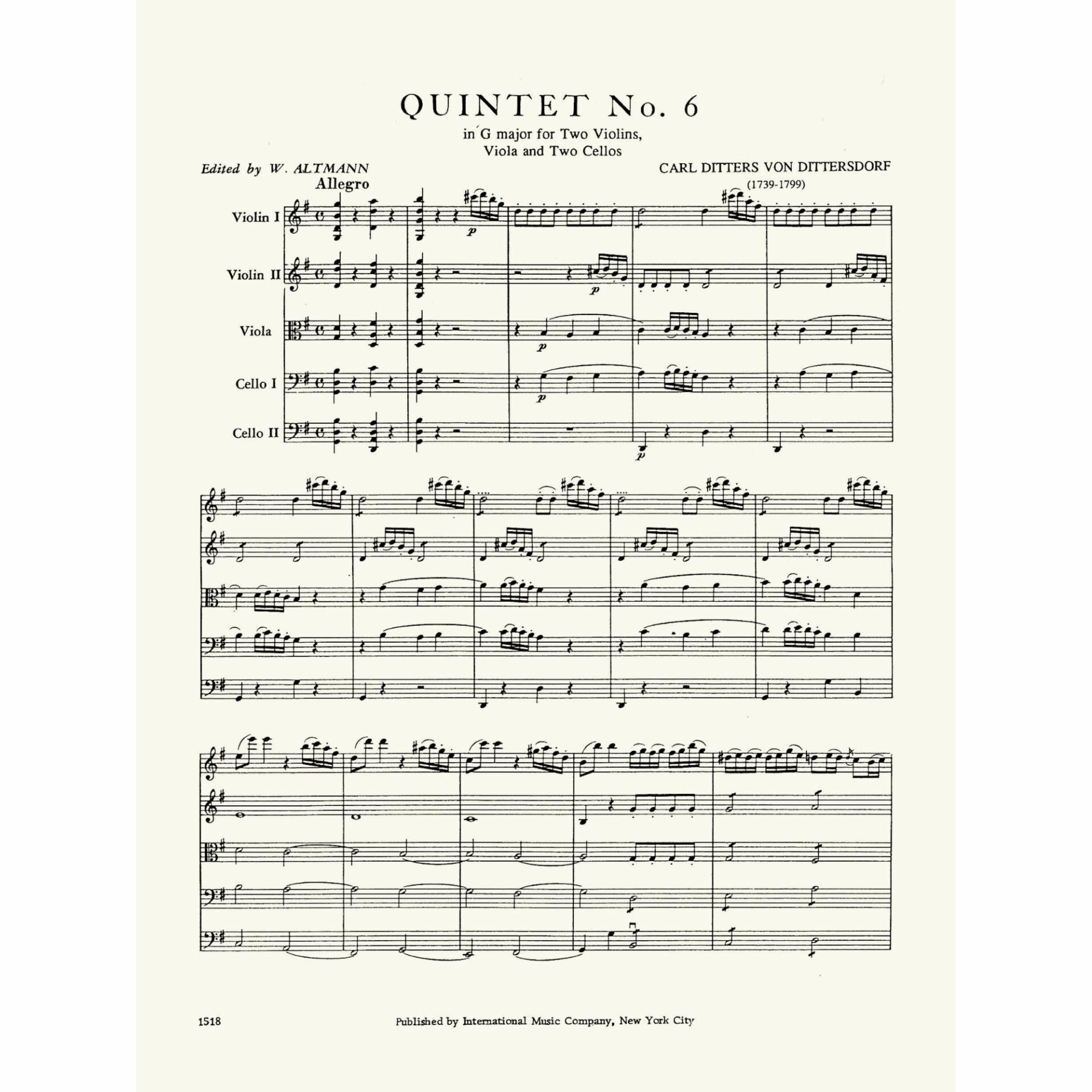 Dittersdorf — String Quintet No. 6 in G Major