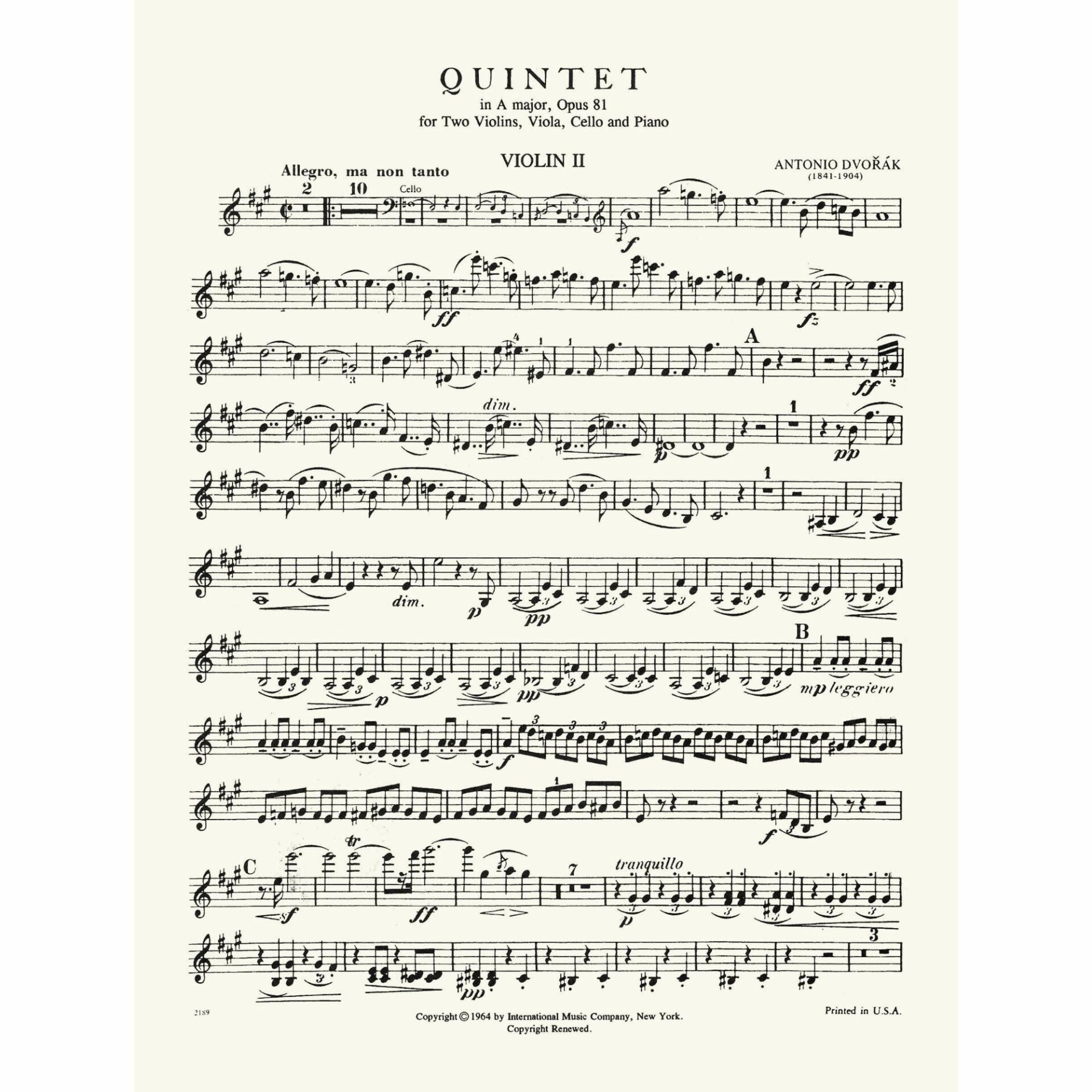 Title: Quintet in A Major, Op. 81