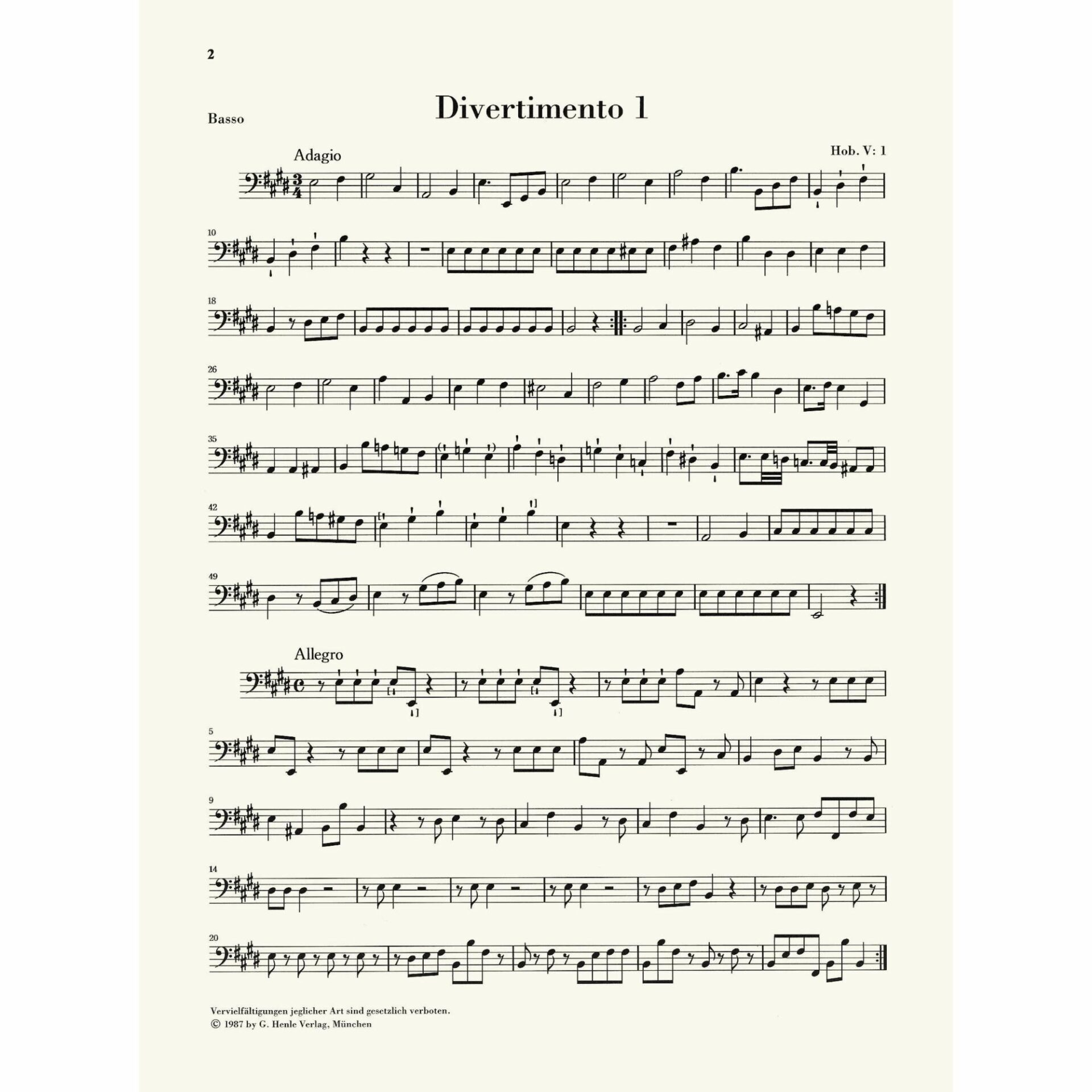 - Divertimento in E Major, Hob. V:1