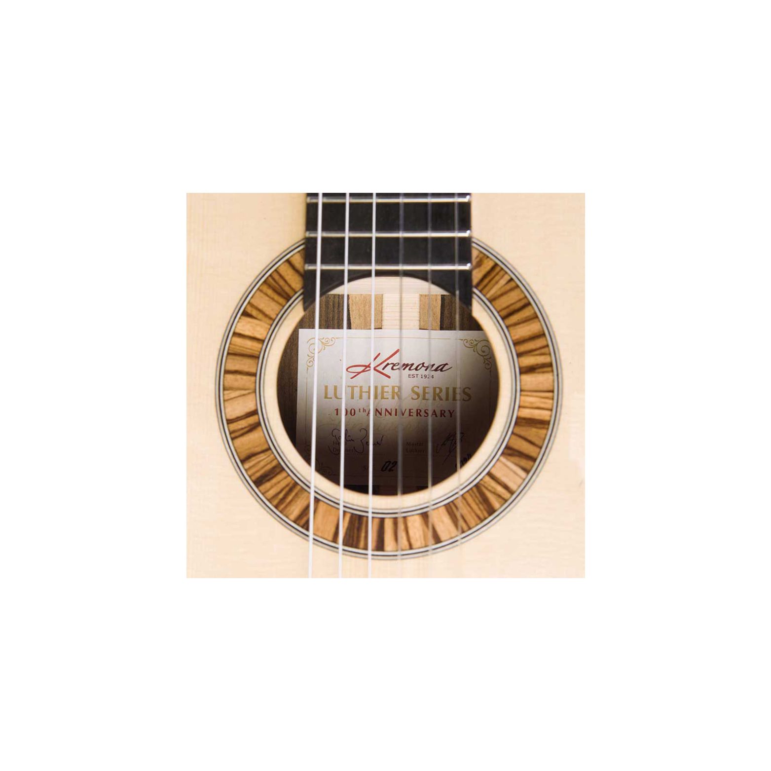 The Kremona 100th Anniversary Guitar embodies the classical build’s timeless qualities while seamlessly integrating modern advantages. Kremona’s unique lattice bracing pattern evokes both the warmth inherent in classical fan bracing, and the strength benefits of lattice construction. This combination forages a new path in musical craftsmanship. The meticulously crafted adjustable side sound monitor and the ergonomically designed bevel ensure unparalleled comfort and joy in playing. Embodied within this groundbreaking guitar lies the culmination of a century’s worth of heritage, a harmonious symphony of craftsmanship and innovation that stands as a testament to Kremona’s enduring legacy and the unparalleled greatness of this exceptional instrument.
