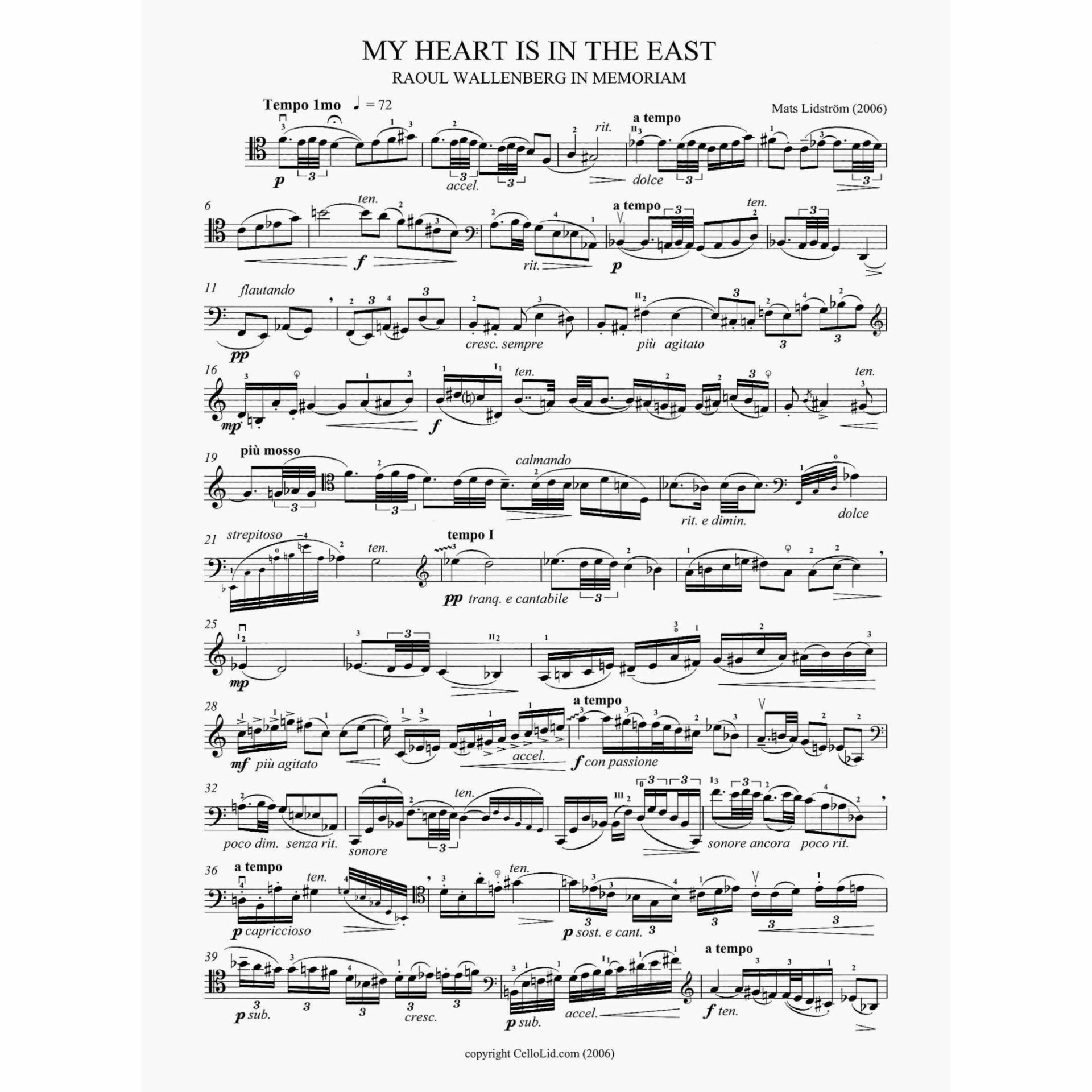 Lidstrom — My Heart is in the East for Solo Cello