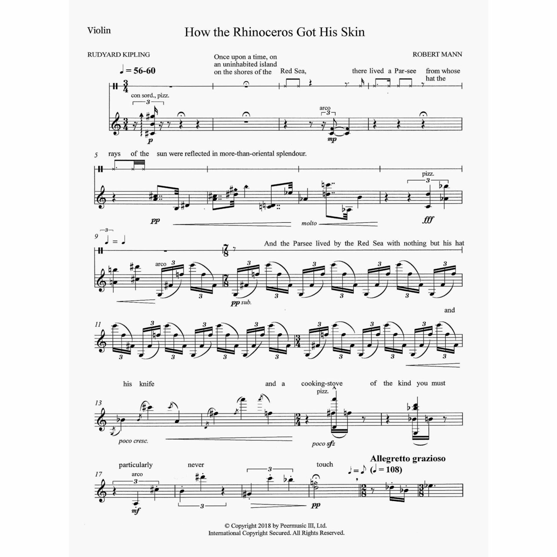 Mann — How the Rhinoceros Got His Skin for Narrator, Violin, and Piano