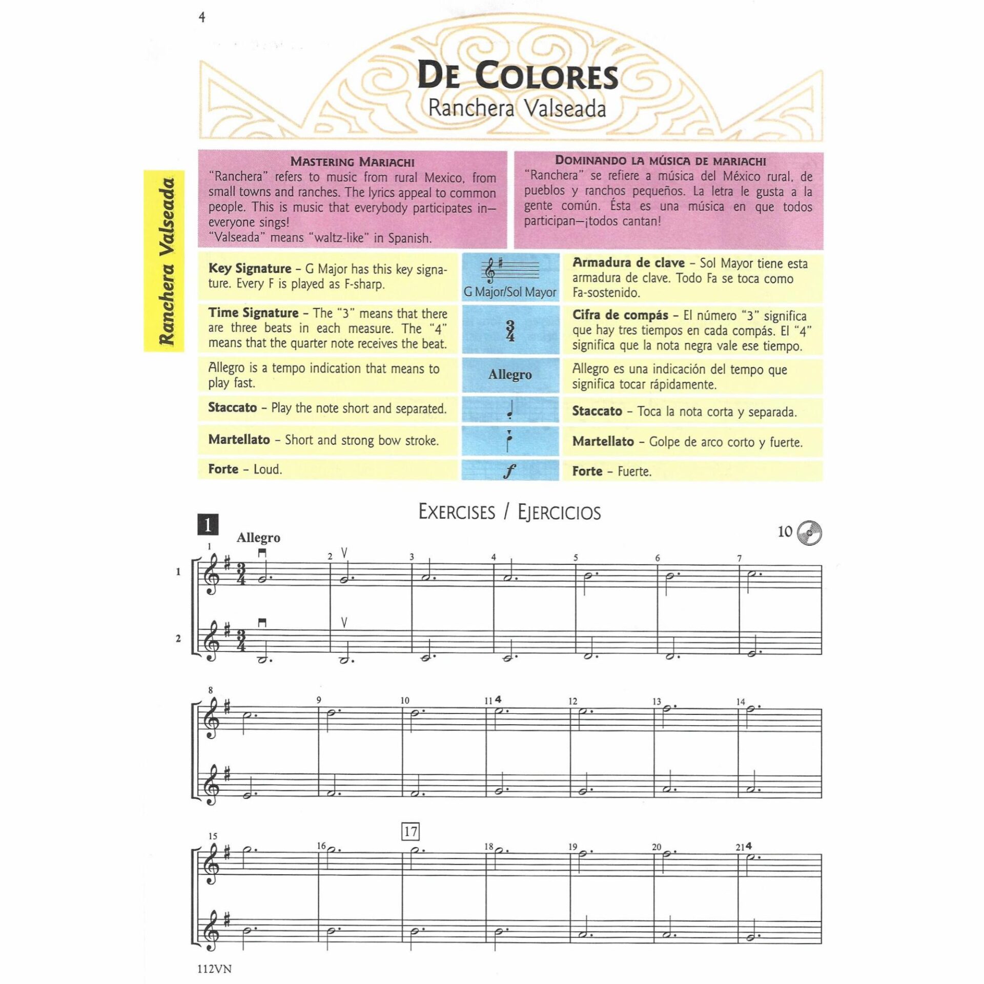 Mariachi Mastery is an authentic course of study for the traditional mariachi ensemble. Twelve classic Mariachi songs are presented in a unique, step-by-step method. Each song is preceded by graduated exercises to help students learn to play and sing in the correct style – from Ranchera Valseada to Son Jaliscience – and a CD included with each book contains tracks to assist with the exercises.