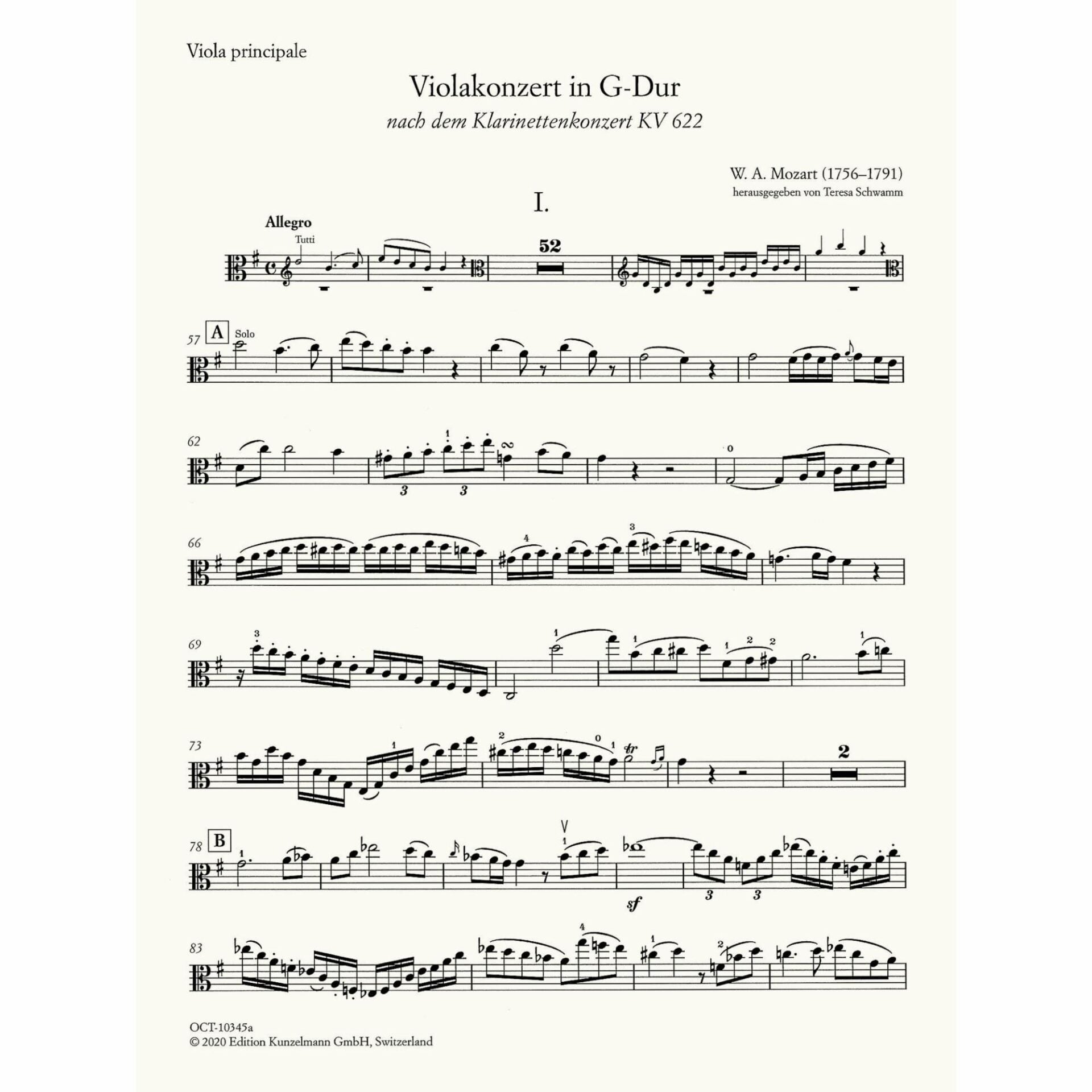 Title: Concerto in G Major, after the Clarinet Concerto, K. 622