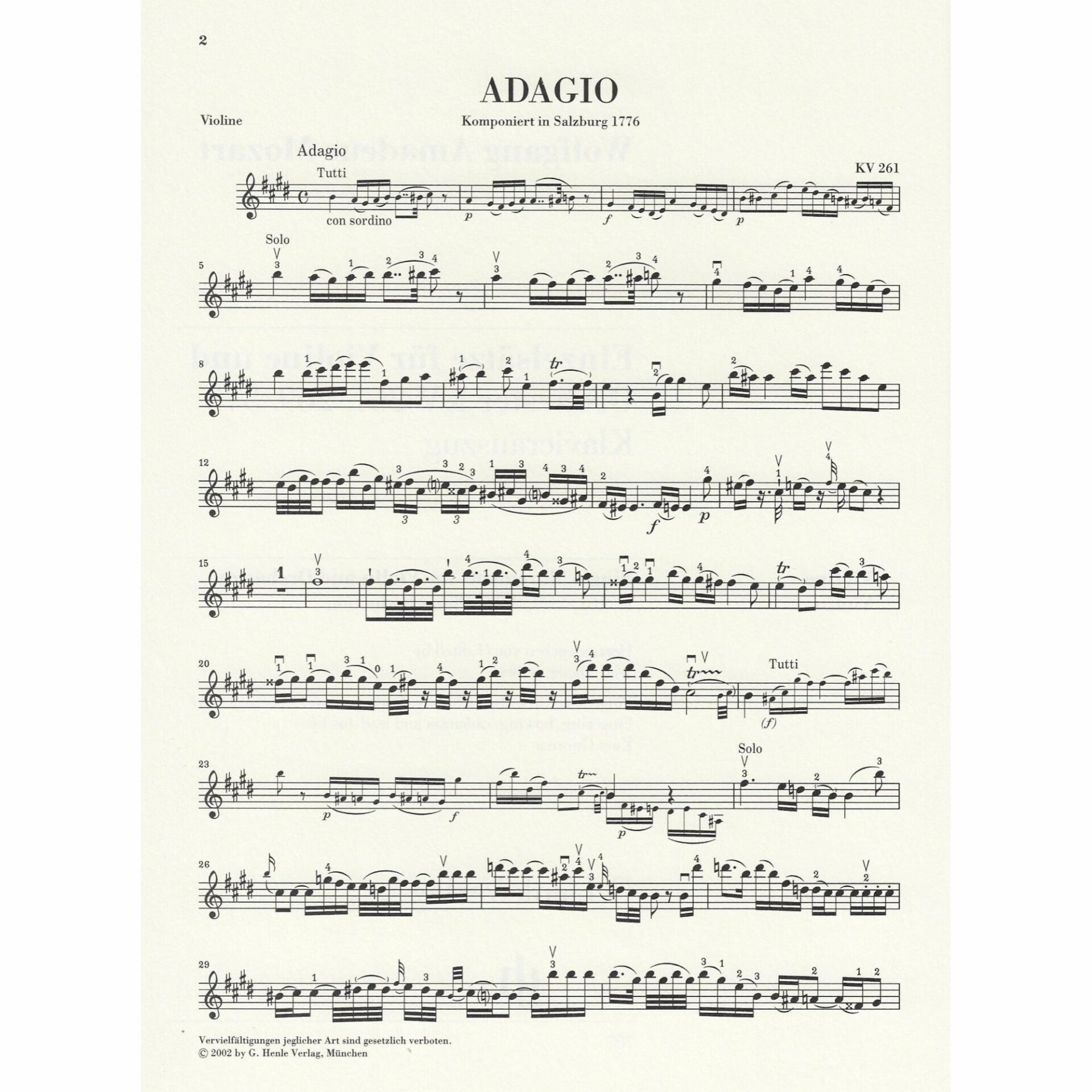 - Adagio in E Major, K. 261
