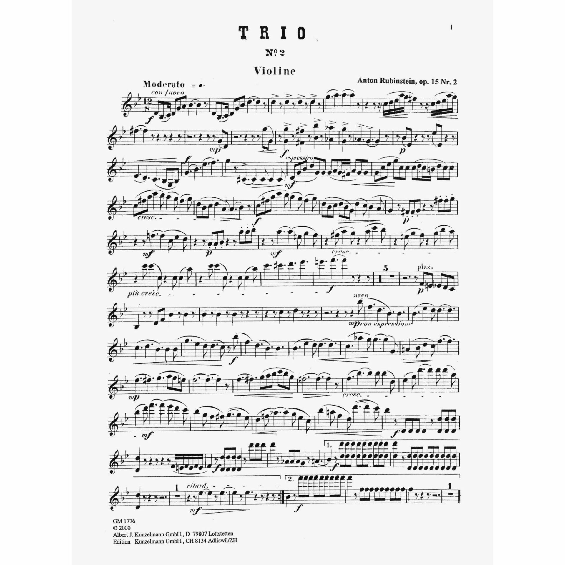 Rubinstein — Piano Trio in G Minor, Op. 15, No. 2