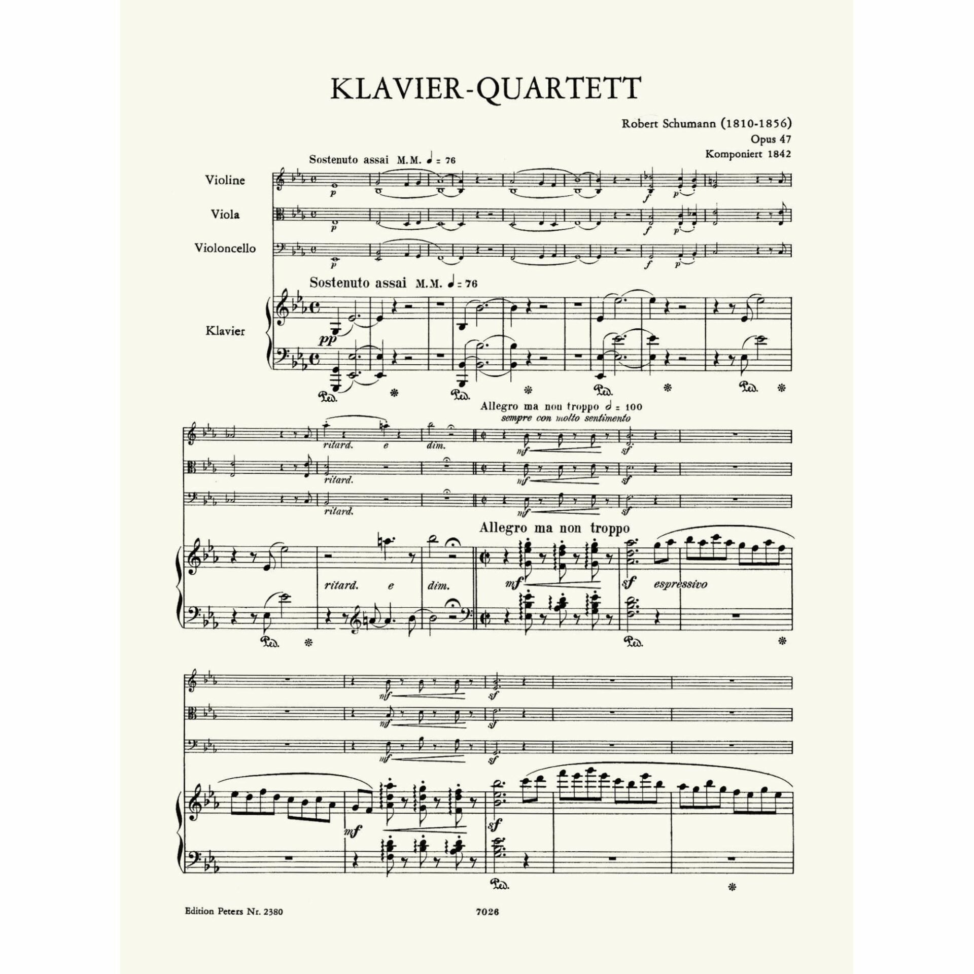Title: Piano Quartet in E-flat Major, Op. 47