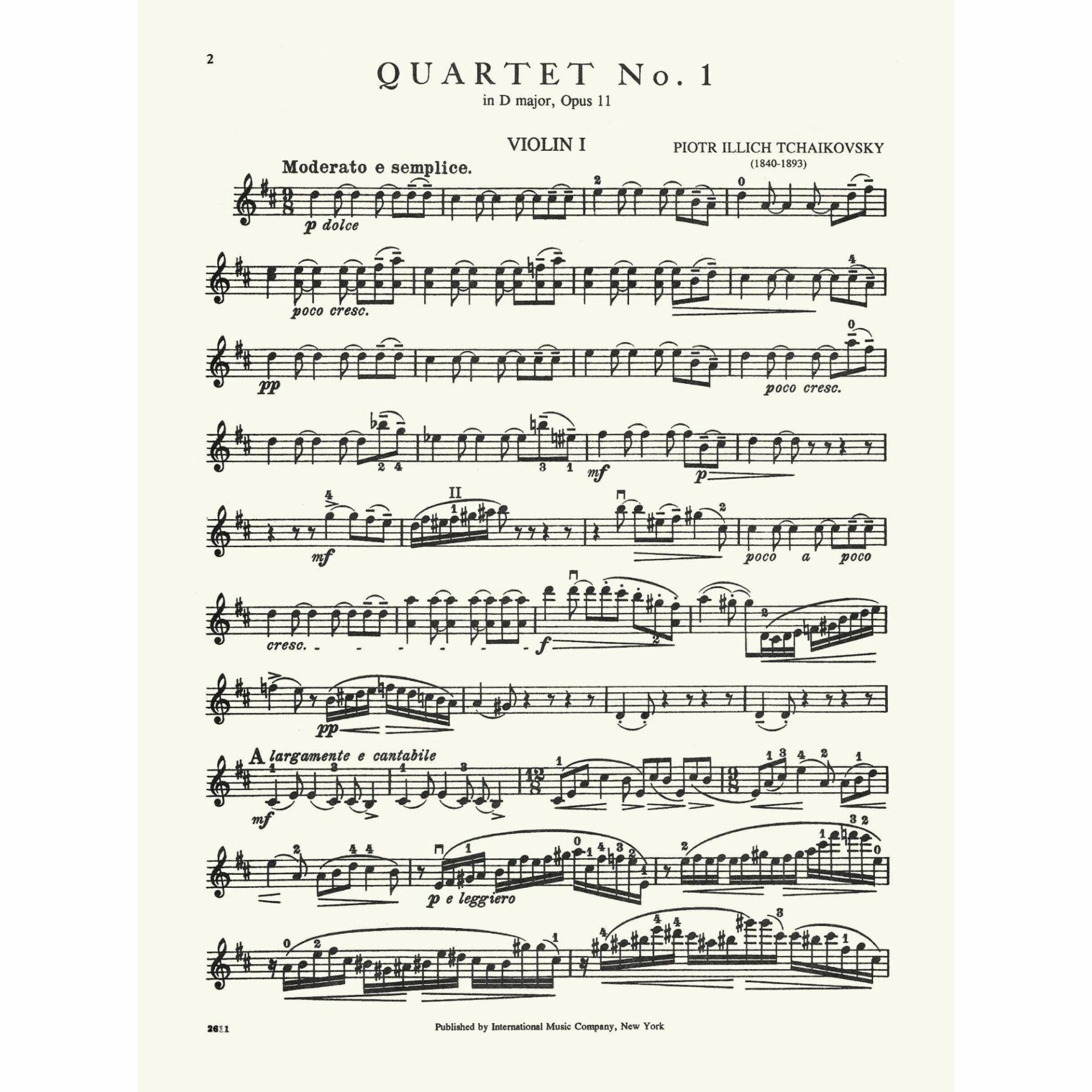 Title: String Quartet No. 1 in D Major, Op. 11