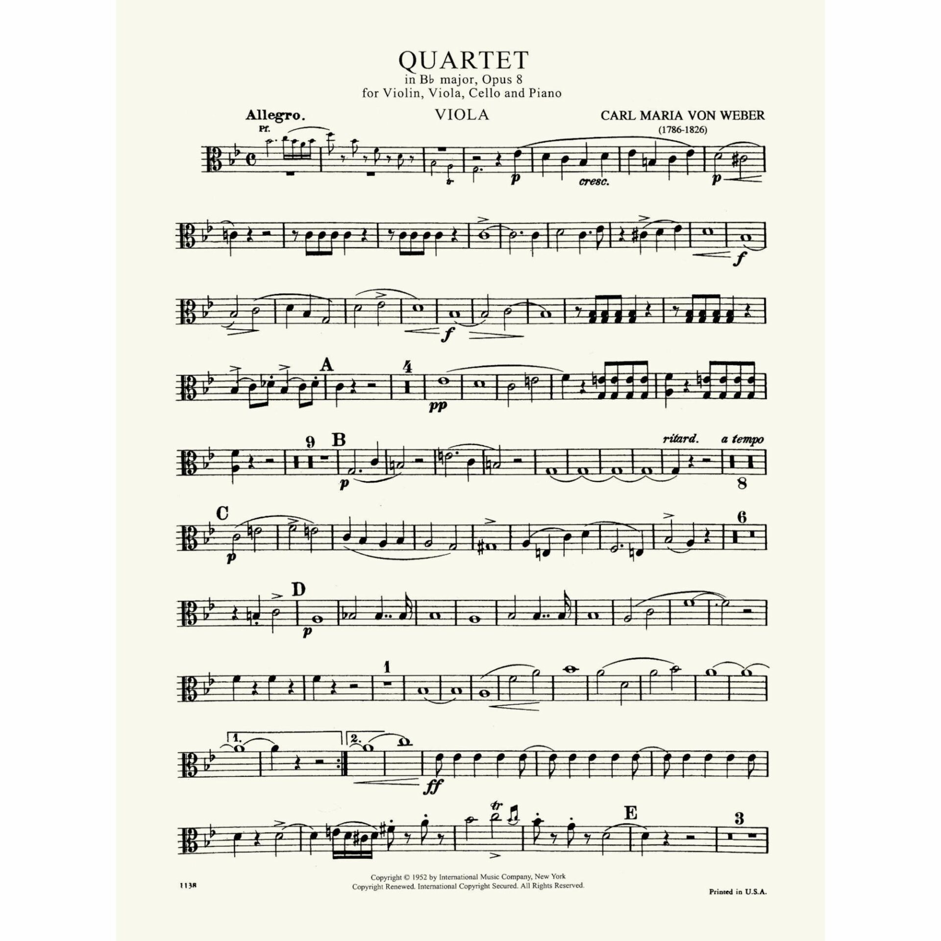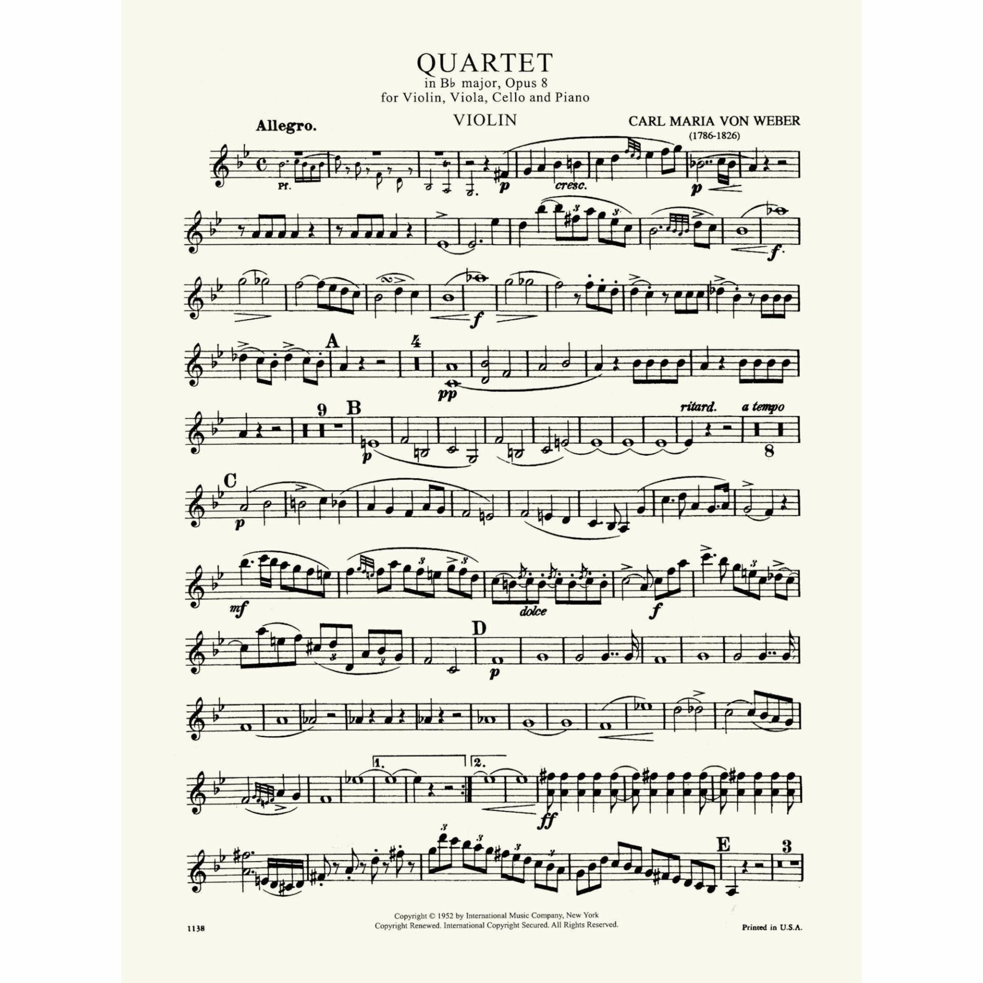 Title: Quartet in B-flat Major, Op. 8